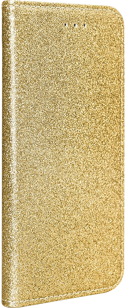 Apple iPhone 11 oldalra nyíló flipes bőrtok csillámos arany leírása