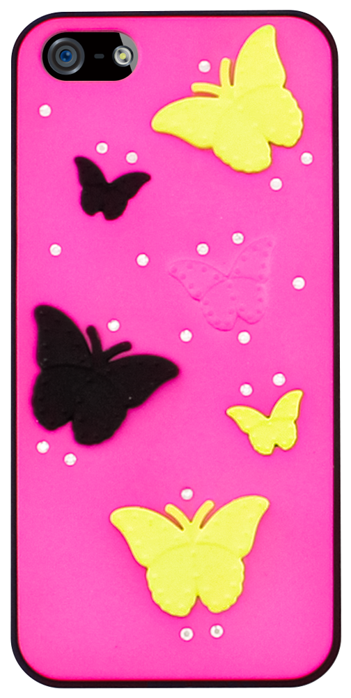 Apple iPhone 5 kemény hátlap 3D színes pillangókkal és strasszal rózsaszín leírása