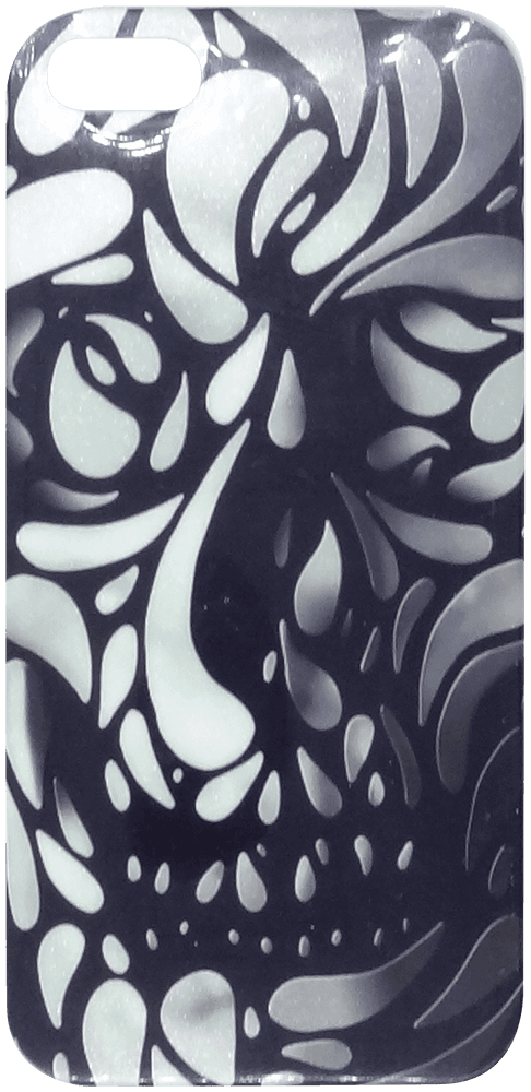 Apple iPhone SE (2016) szilikon tok nonfiguratív koponya minta, lilán csillogó leírása