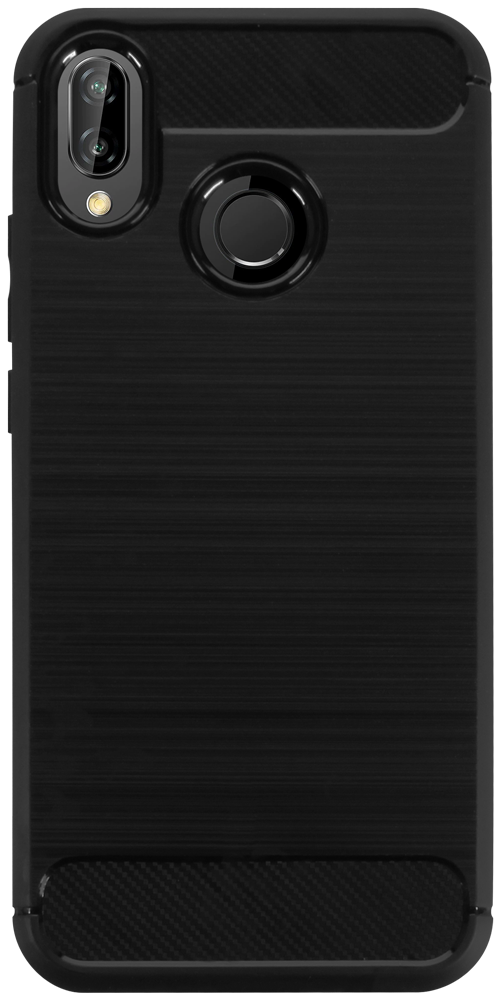 Huawei P20 Lite ütésálló szilikon tok szálcsiszolt-karbon minta légpárnás sarok fekete