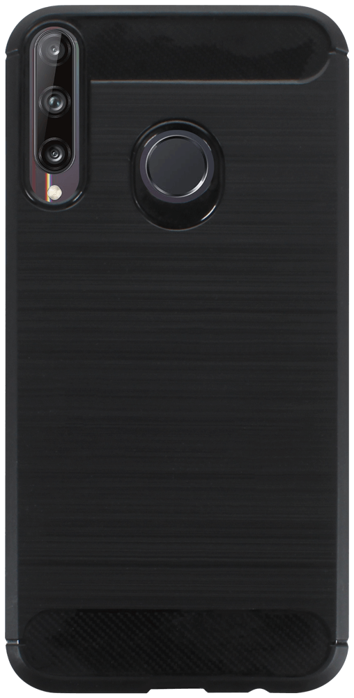 Huawei P40 Lite E ütésálló szilikon tok szálcsiszolt-karbon minta légpárnás sarok fekete