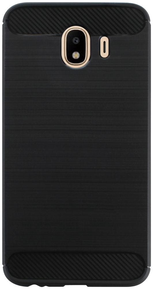 Samsung Galaxy J4 2018 (J400) ütésálló szilikon tok szálcsiszolt-karbon minta légpárnás sarok fekete