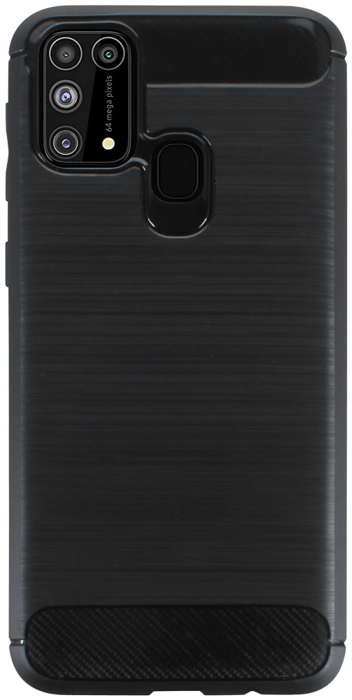 Samsung Galaxy M31 (SM-M315F) ütésálló szilikon tok szálcsiszolt-karbon minta légpárnás sarok fekete leírása